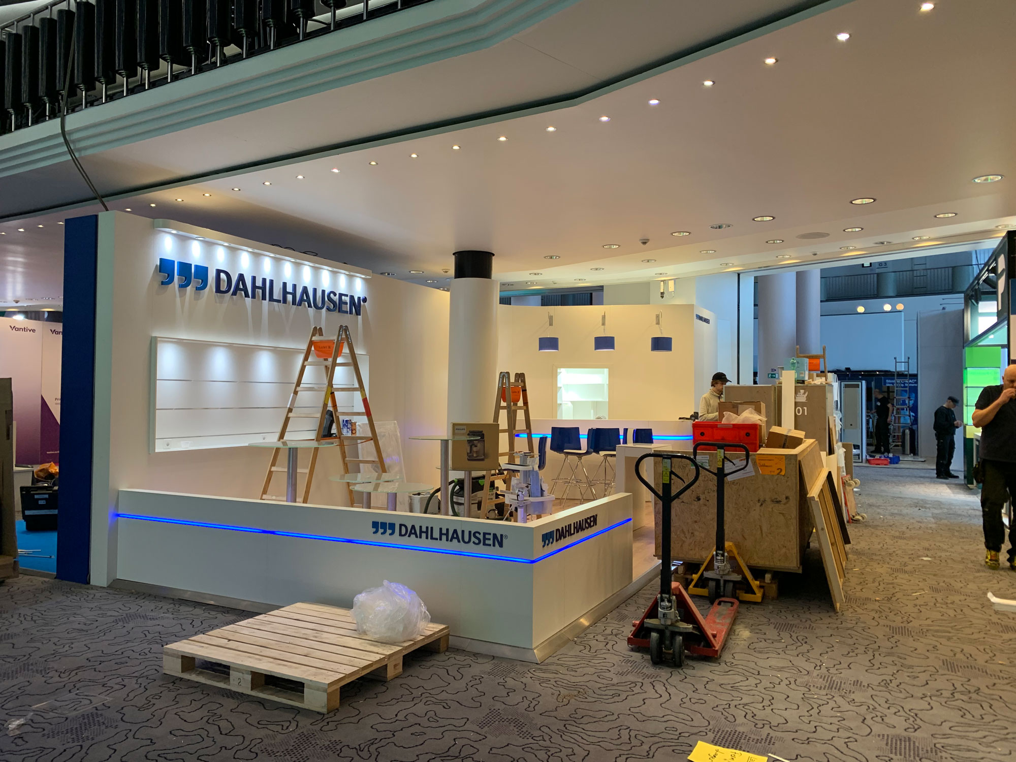 Bei Dahlhausen haben wir genau das umgesetzt. Einmal produziert, einmal durchdacht – und dann konsequent eingesetzt. Die Anforderungen an Transport, Lagerung und Aufbau waren von Anfang an Teil der Planung, nicht nachträgliche Gedanken. Das schont das Budget, entlastet das Team vor Ort und sorgt dafür, dass der Auftritt auf jeder Messe professionell und stimmig wirkt.