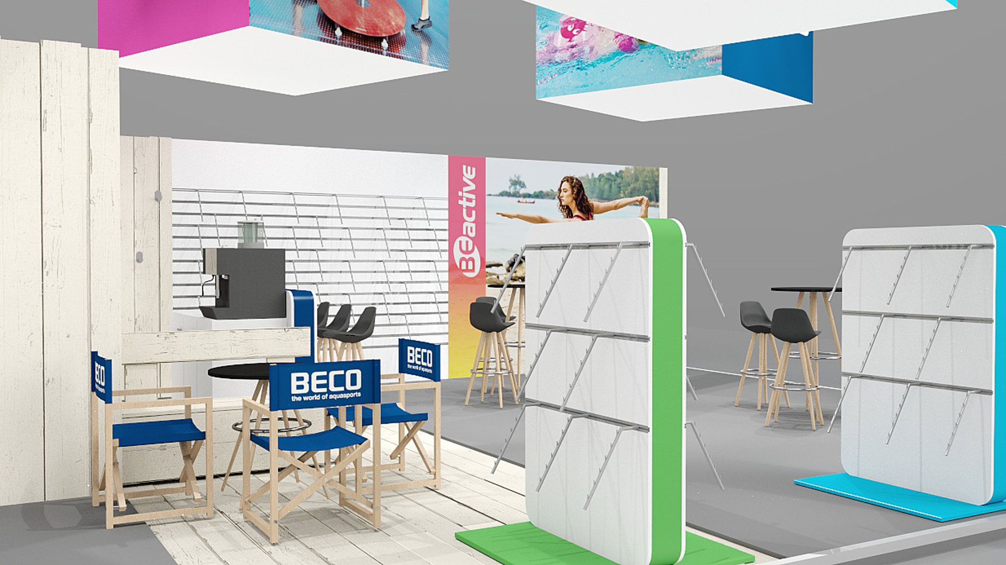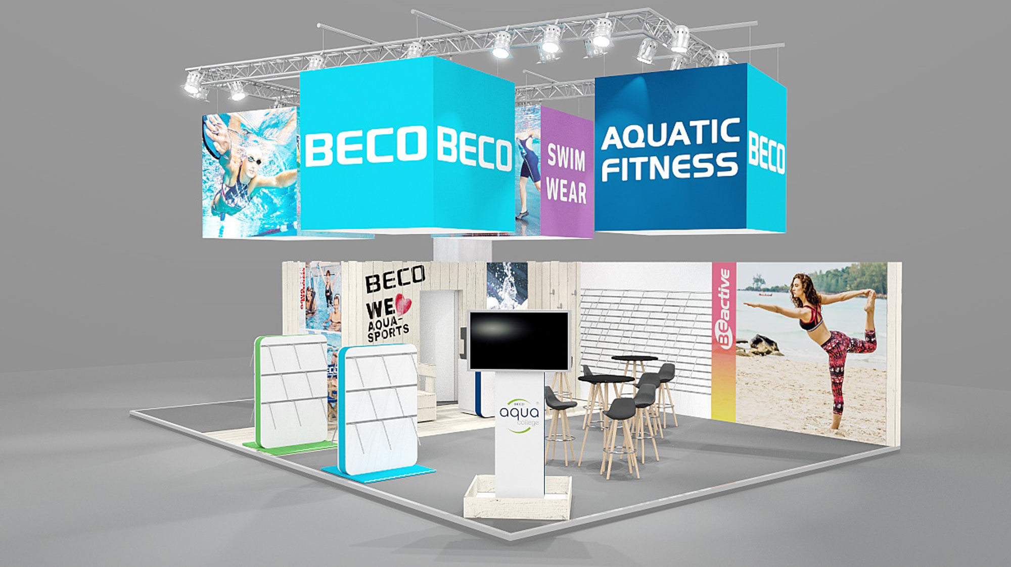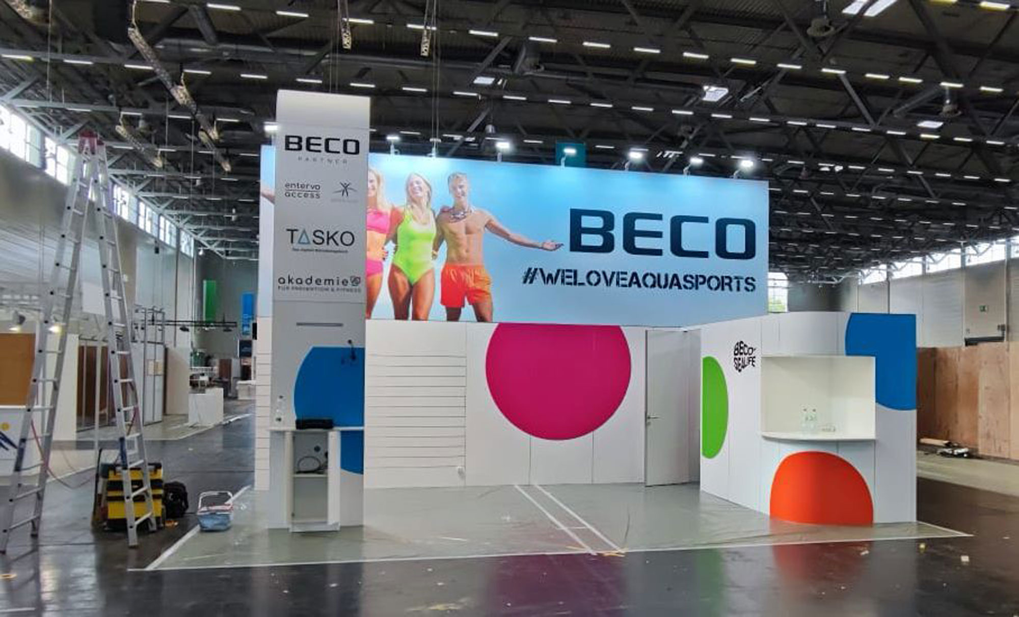 Das Unternehmen aus Bad Salzuflen steht seit Jahrzehnten für alles, was mit Wasser zu tun hat: Schwimmbrillen, Bademode, Aquafitness, Schwimmtraining, Schwimmen lernen. Eine Produktwelt, die bunt, lebendig und nah am Menschen ist – und genau das muss der Messestand auch sein. Wer BECO auf einer Messe besucht, soll sofort spüren: Hier steckt echte Leidenschaft fürs Wasser dahinter.